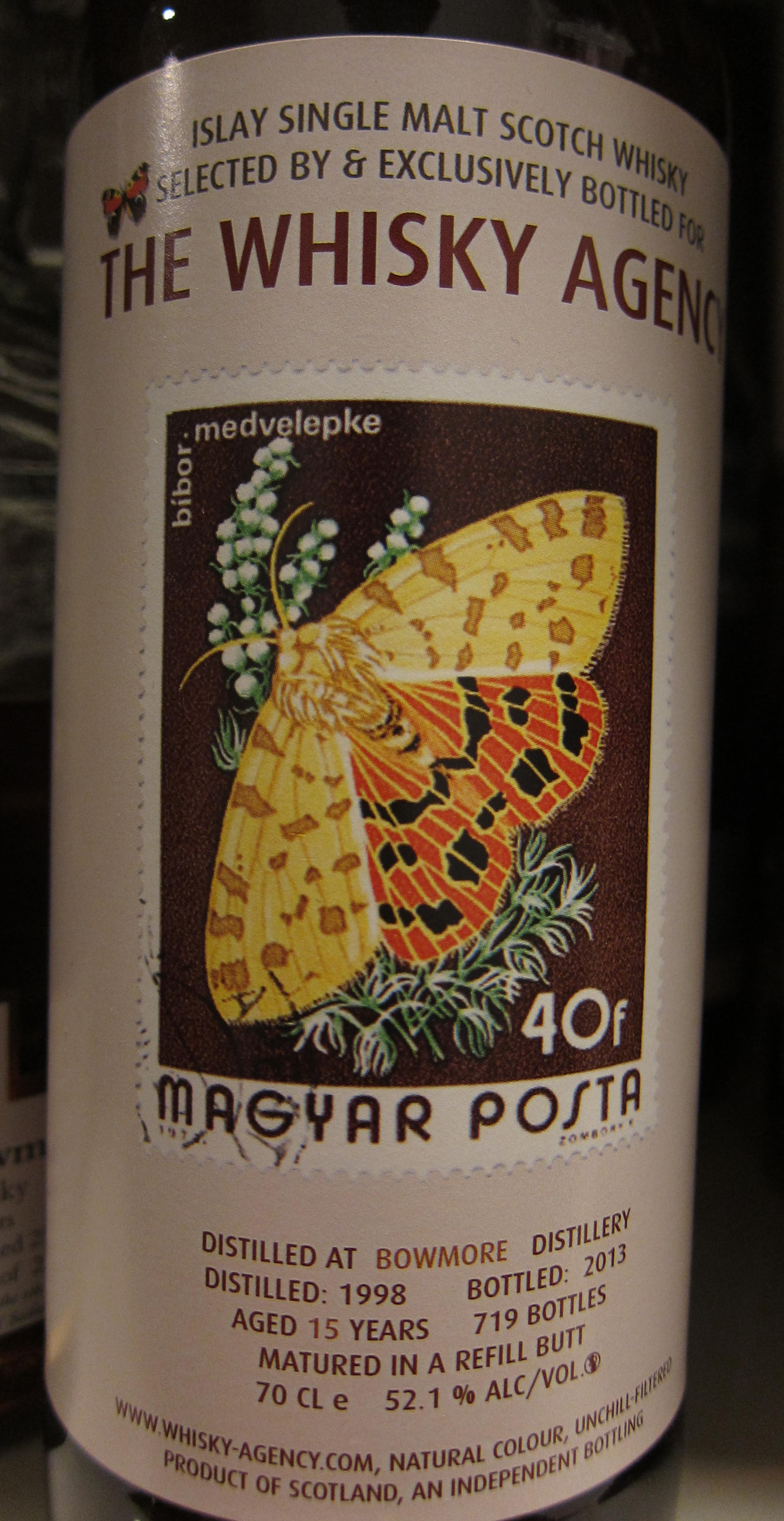 Bowmore 1998 / 2013, The Whisky Agency, ‘Stamps’, refill butt, 719 bottles, 52.1 bottles