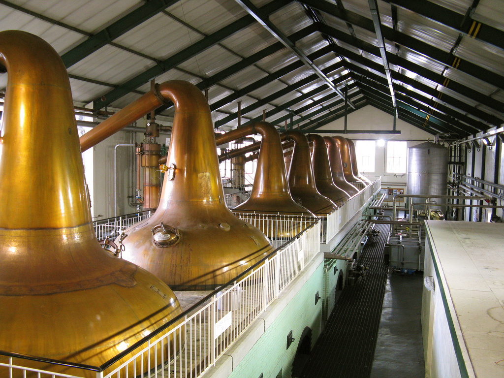 On the subject of odd things, which seems in no short supply at Ardmore, consider that from early on in the 70s, Ardmore was already one of the largest distilleries in Scotland with 8 stills and yet also one of the last distilleries to convert from direct heating (coal in this case) to steam heating in 2002. Note the steep decline of the lyne arms and pretty pots all in a row: