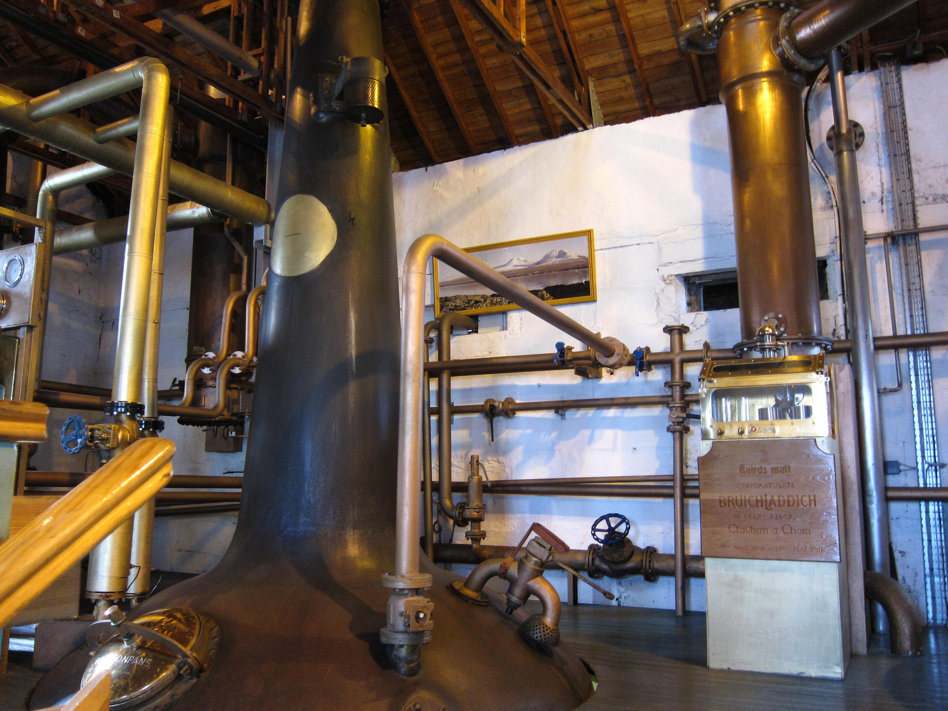 The stills say something of the whisky. They are rather on the small side at 6m, but look at the narrowness and height of the neck. It is barely 1m across at the base, such a narrow and lifting neck suggests a light elegant whisky. Which is exactly its house style.