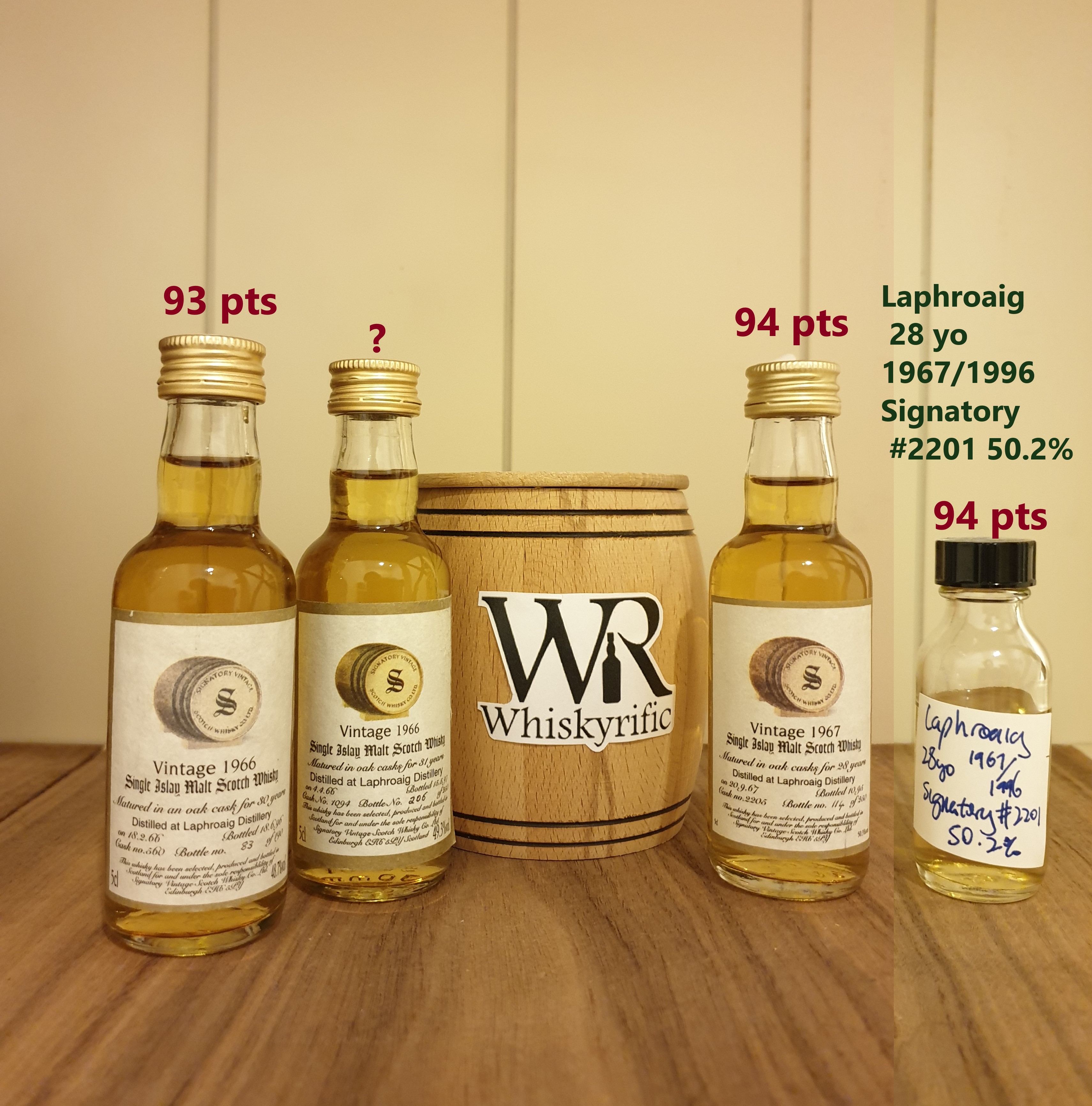 One comment on “Laphroaig 30 yo 1966/1996 Signatory #560 48.7% vs Laphroaig 31 yo 1966/1997 Signatory #1094 49.3% vs Laphroaig 28 yo 1967/1996 Signatory #2201 50.2% vs Laphroaig 28 yo 1967/1995 Signatory #2205 50.3%