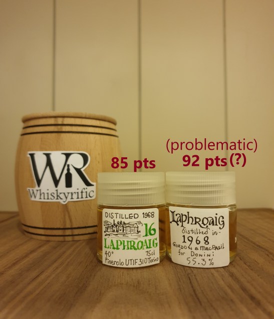 Right. A lot going on. It’s got quite some gamey animalic aspects, tons of salt and a deep growling peat. Again not the obviously fruity sort of 60s Laphroaig but that’s not itself an issue. Rich and ripe sort of flavours float up here, jungle undergrowth, damp mouldering compost. Plenty of tar pits and black grimy oils. But it does seem quite subtle in turns. Perhaps not as approachable and obviously glorious as the lively 1966/67 Signatories but undoubtedly of meandering depth. Gets progressively saltier and more herbaceous with mint based bitters and burnt medicinal herbs, burnt myrtle and eucalyptus syrup. And the smoke grows into a billowing fog of Grey’s and blacks… But fruity notes are not apparent and the lack of power and conviction in this sample makes me thing I may have kept this one too long. So 92 pts for what must be a sample in decline.