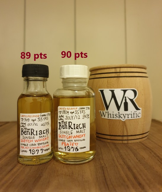 I hadn’t realized my last review was posted exactly a month ago. I will blame it on work and other olfactory pursuits, with a generous dash of laziness plus maybe a bit of year end insouciance. Two 70s Benriach for consideration. These were of course released under the stewardship of Billy Walker, and it is always worth sampling casks like these which really raised Benriach’s profile circa 2010. Even today these bottles might still win the best bang for buck award in the old style fruity segment.
