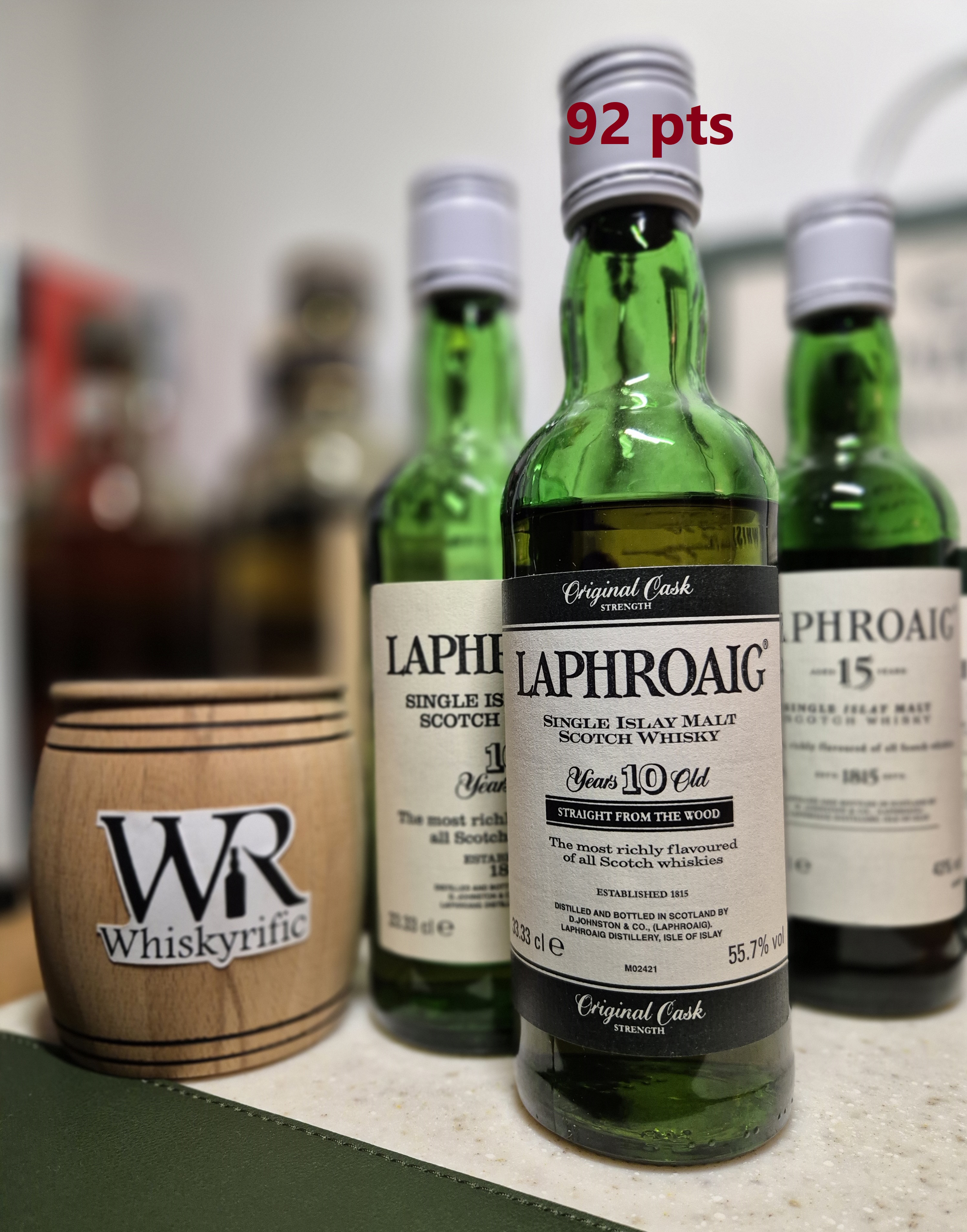And finally the powerhouse of the trio. Does exactly what it suggests it would, take the astounding phenolic depth of the 10 at 43%, amp it up with abv and happily find that this too perfectly balances peat and maritime sharpness, like Laphroaig was always meant to be just so. Black oil and oozing peat, seaweed trampled into mud, wintergreen, jujubes, incense ash, dark resins at the bottom of sooty burners, sharp blade of salt, pulled nets, more seaweed fresh and zingy this time, citric lemon and white smoke. Somewhere someone’s melting pitch. So much depth and subtle power. 92 pts