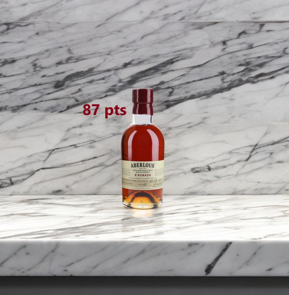 A familiar sort of profile, sherry over Speyside, but where you expect eloquence and richness, here the Aberlour feels rather firm and standoffish. Its a forced marriage it seems and the drippy richness of the sherry hasn’t quite melded fully into the spirit, making an otherwise decent sherry a velvet veneer and demonstrates why some things cannot be rushed. All the hallmarks of a decadent sherry are there only it wants time to unfurl, and the young Aberlour still speaks of a minerality stoniness and soot, with hints of angelica and chlorophyll. Best with water and plenty of time. 87 pts