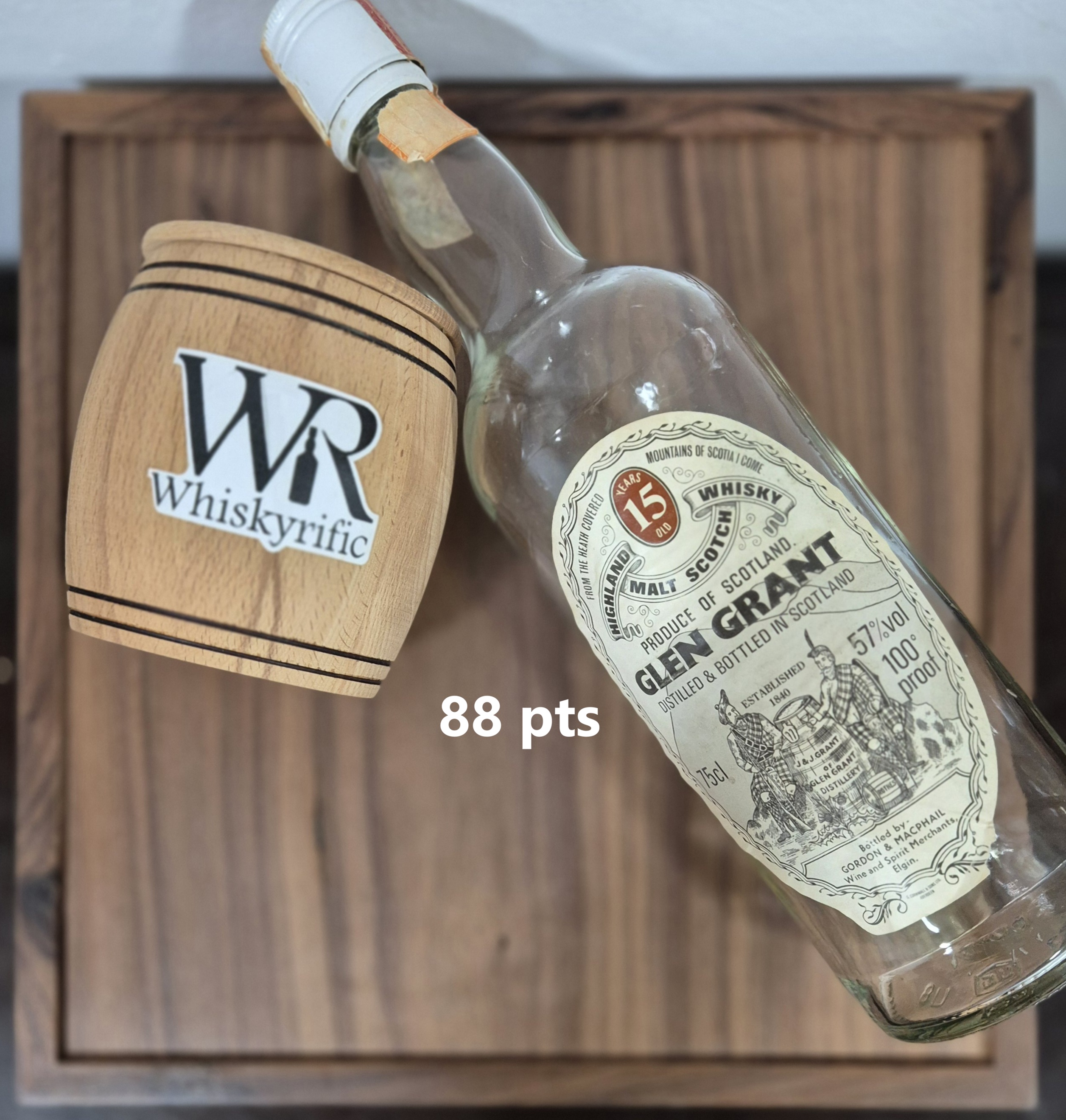 This one is an example of sherry as a veneer. Its a tannic but rich layer with black tea and dried bark matched with chocolate boxes and tobacco leaf, all rather dry initially. Leather, bitter walnut and licorice but also skins of kyoho grapes and something like prune liqueur. Its an old sort of sherry with soot and dry dirt making it pleasantly earthy, but the form of Glen Grant is coiled and ready to spring with a tense litheness and focused minerality. Hot flints, unripe prunes, steel pans and waxed brown paper. Dry! 88 pts